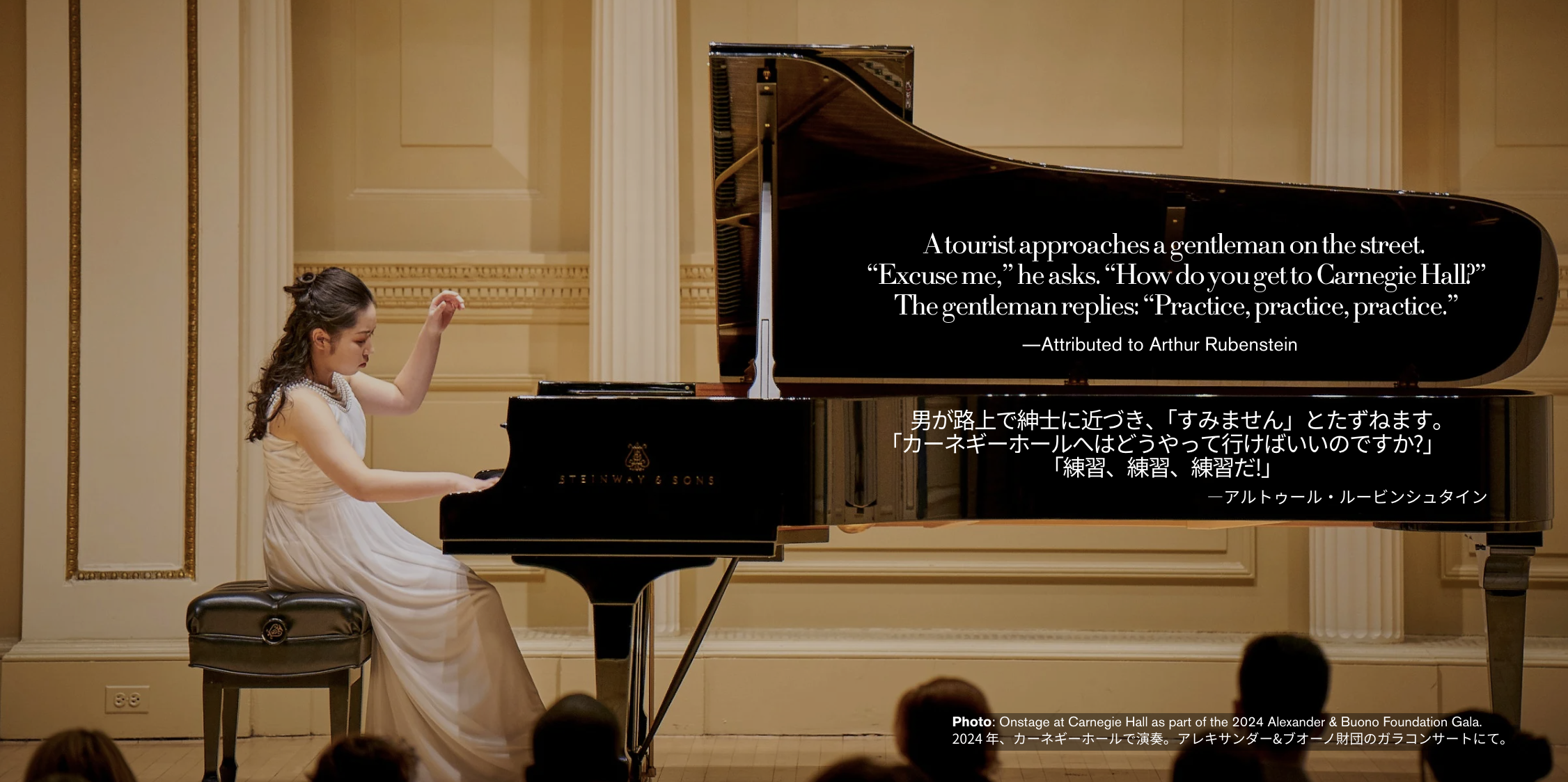 This extraordinary bilingual book — written in both English and Japanese — chronicles the fifteen-month journey from the moment Carnegie Hall's date was confirmed to the night Nana steps onto its legendary stage.